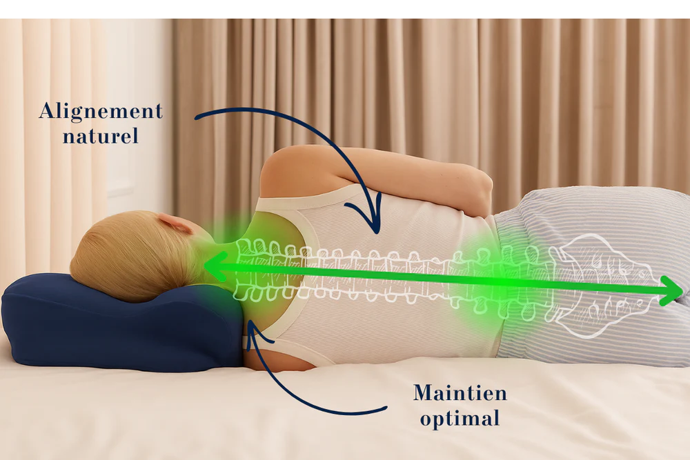 Un oreiller inadapté peut désaligner la nuque, comprimer les vertèbres et provoquer des tensions invisibles… qui se font sentir dès le réveil.